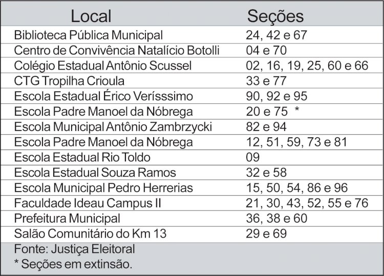 Eleição 2024 - Confira o local das seções nos seis municípios da 70ª Zona Eleitoral