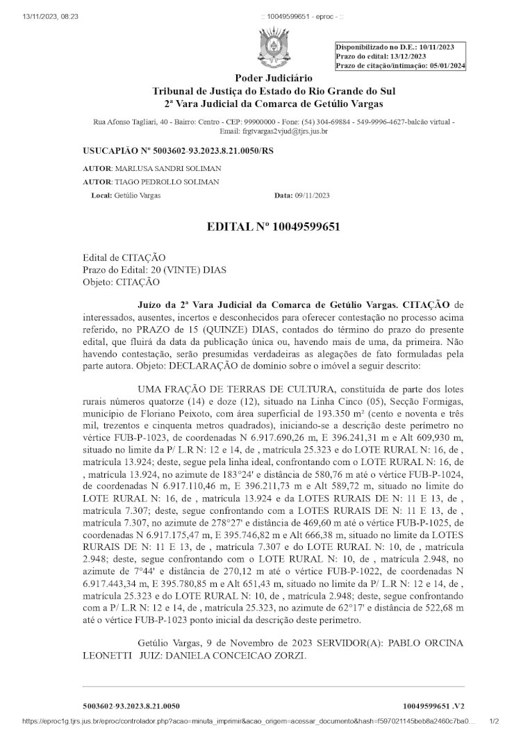 Poder Judiciário - Edital de Citação - Número 10049599651